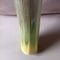 Vase longue soliflore en terre cuite émaillé avec 3 couleurs jaune, vert et bleu.